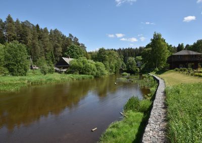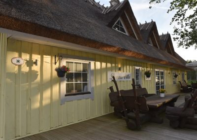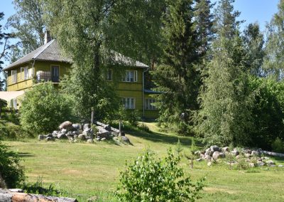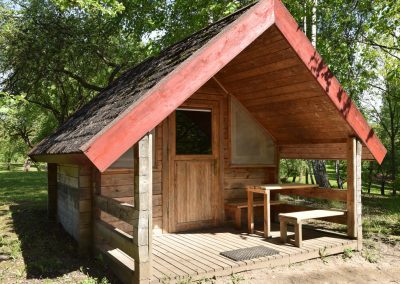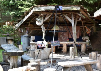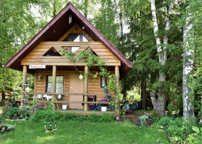 Es gab eine Gemeinschaftsküche in Blockbauweise wobei nur natürliche Baustoffe aus den umliegenden Wäldern verwendet wurden. Auch die dortigen 3 Blockhütten die gemietet werden können bestanden aus halben roh zu gehauenen Bäumen. Eine Sauna war ebenfalls vorhanden die den Gästen kostenfrei zur Verfügung stand.