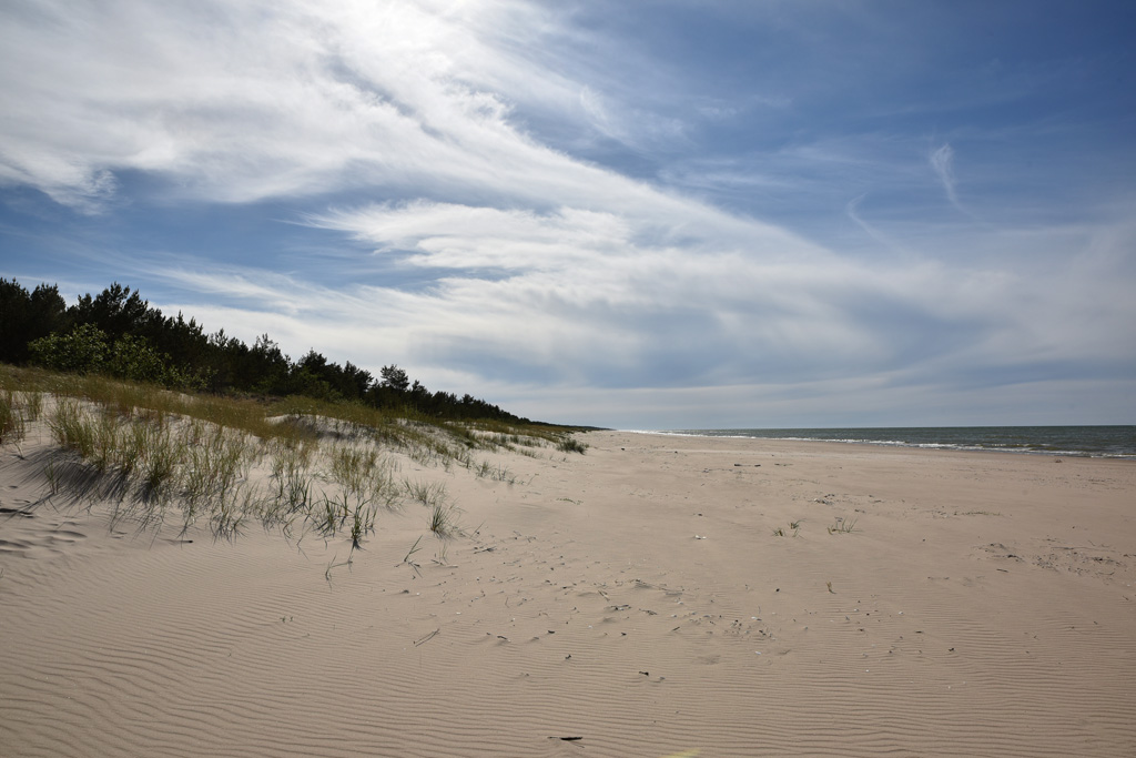 Landschaftlich ist die Ostsee Küste einfach nur unheimlich schön und einsam mit einem feinkörnigem Sand. Die dortigen Kiefernwälder ziehen sich an der Küste entlang und reichen teilweise hinunter bis zum Strand. Auf Grund vorhandener Schönheit der Landschaft und dessen Ruhe sowie des Platzes beschlossen wir hier einige Tage zu verbringen bevor wir im Anschluss die Grenze nach Lettland passieren werden