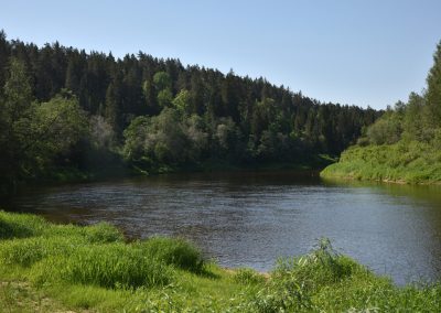 Was wir aber sahen waren einige Füchse die langsamen Schrittes die Strasse überquerten. Der Platz (Zargalkalns ) liegt direkt am Ufer der Gauja die sich in weiten Biegungen ganz gemächlich durch den Nationalpark zieht. Die Gauja ist an manchen Stellen sehr flach so das einem das Wasser nur bis zur Brust reicht. Da die Gauja kaum nenneswerte Stömung aufweist ist ein baden im Fluß ungefährlich.