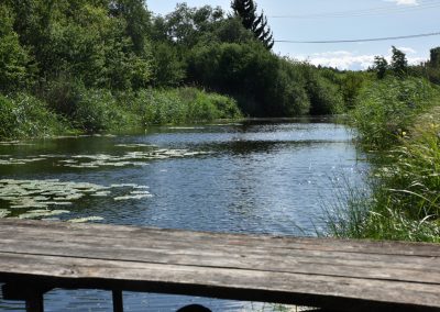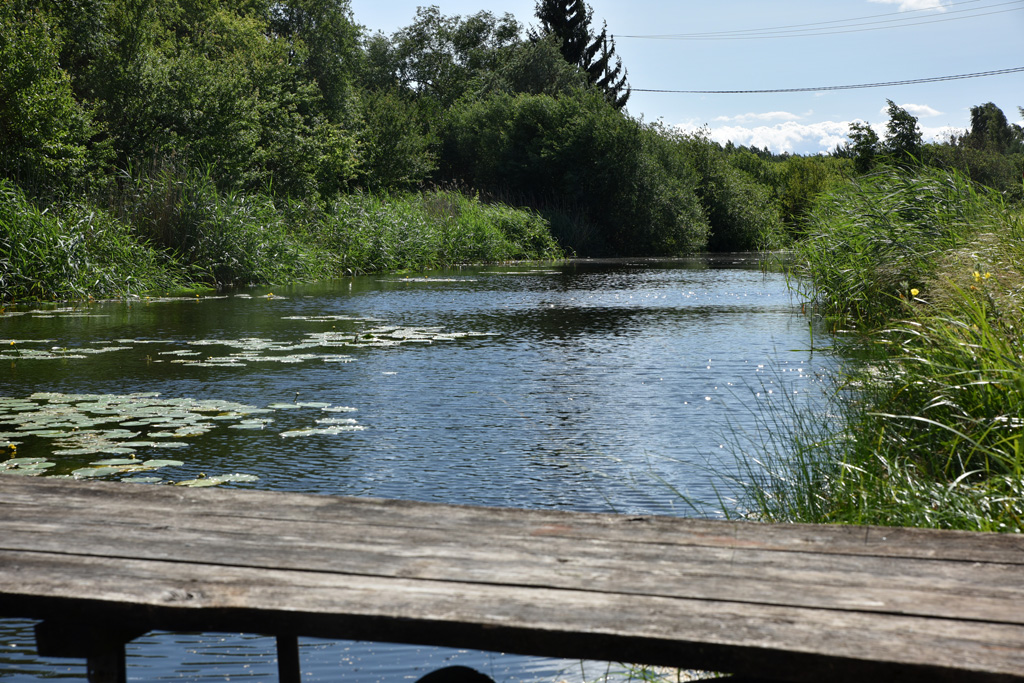 Die zu fahrenden Straßen waren sehr gut ausgebaut und führten uns durch Birkenwälder die von Feldern und einigen Seen unterbrochen waren. Die Zufahrt zu dem Campingplatz führte uns über eine sehr schmale Holzbrücke die gerade so für die Größe von unserem Wohnmobil ausreichte. Größere Fahrzeuge könnten da schon etwas mehr an Schwierigkeiten bekommen diese Zufahrt zu bewältigen.
