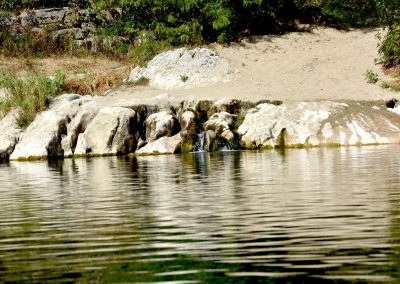 Somit führte uns der Weg zu einem Campingplatz mit dem Namen ( Il du Tunnels ) an der Ardeche. Der Campingplatz liegt direkt am Ufer der Ardeche und ist nicht besonders groß welches die Anzahl der vorhandenen Stellflächen betrifft. Diese liegen überwiegend unter Bäumen im Schatten und sind relativ eben und ausreichend groß. Die Versorgung mit dem nötigen Frischwasser erfolgte über Zapfstellen die auf dem Platz verteilt waren. Allerdings hatten diese keinen Schlauchanschluss so das wir unser Wasser mittels einer Gießkanne auffüllen mussten.