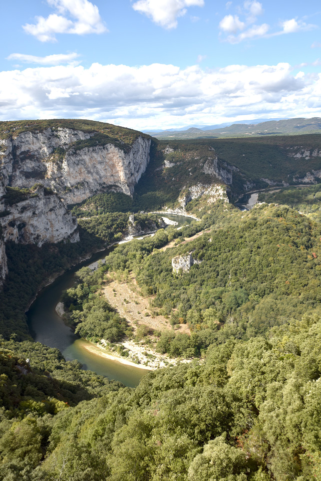 Die Landschaft in dieser Region in Frankreich ist ein Hochplateau in der sich die Ardeche im Laufe der Jahrtausende durch den hier vorherrschenden Kalkstein immer tiefer in die Landschaft gefressen hat. Die dadurch entstandene Schlucht weist an einigen Stellen eine Tiefe von einigen 100 m auf. Heute bezeichnet man diese Landschaft auch als den Grand Canyon Europas.