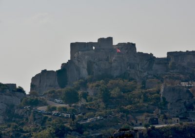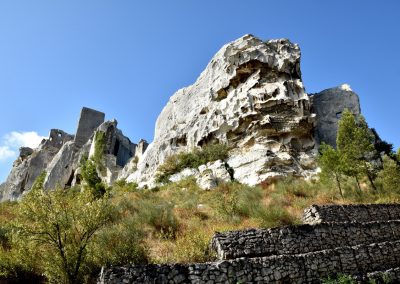 Zugleich kann man diesen auch gut als Ausgangspunkt zur Erkundung der  Provence und seinen umliegenden Orten nutzen. So fuhren wir selber zu einige kleine Orte wie Les Baux in der Provence. Der Ort les Baux besteht aus einer grösseren Ansammlung von alten Gebäuden sowie engen Gassen. Die vorhandenen Gebäude werden heute allesamt komerziell genutzt. So gibt es eine Vielzahl an Restaurants, Imbissbuden und Souvenierläden die allerdings auch nicht gerade preiswert sind. Um die auf dem Berg stehende Ruine zu besichtigen werden ebenfalls nach unserer Meinung etwas zu hohe Eintrittspreise verlangt. Ob dieses es einem wert ist muss dabei jeder für sich selbst entscheiden. Wir haben uns jedenfalls das alte verfallene Gemäuer erspart und uns dafür entschieden am Abend lieber eine gute Flasche Französischen Weines zu genießen.