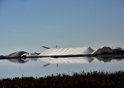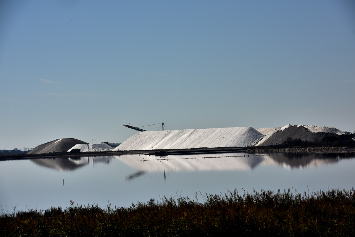 Praktisch direkt hinter Aigus Mortes befinden sich die Salinen wo das berühmte Salz ( fleur de Mer ) in einem Aufwendigem Verfahren gewonnen wird. Das eingeleitete Meerwasser läuft durch verschiedene Becken wobei durch Verdunstung des Wassers der Salzgehalt ständig steigt. Bis das entstandene Salz gewonnen werden kann vergehen je nach Dauer der Sonneneinstrahlung bis zu mehreren Monate. Daher gehört das hier gewonnene Salz auch zu einem der teuersten auf dem Markt. Die Salinen kann man mittels einer geführten Tour direkt von Aigues Mortes besichtigen.