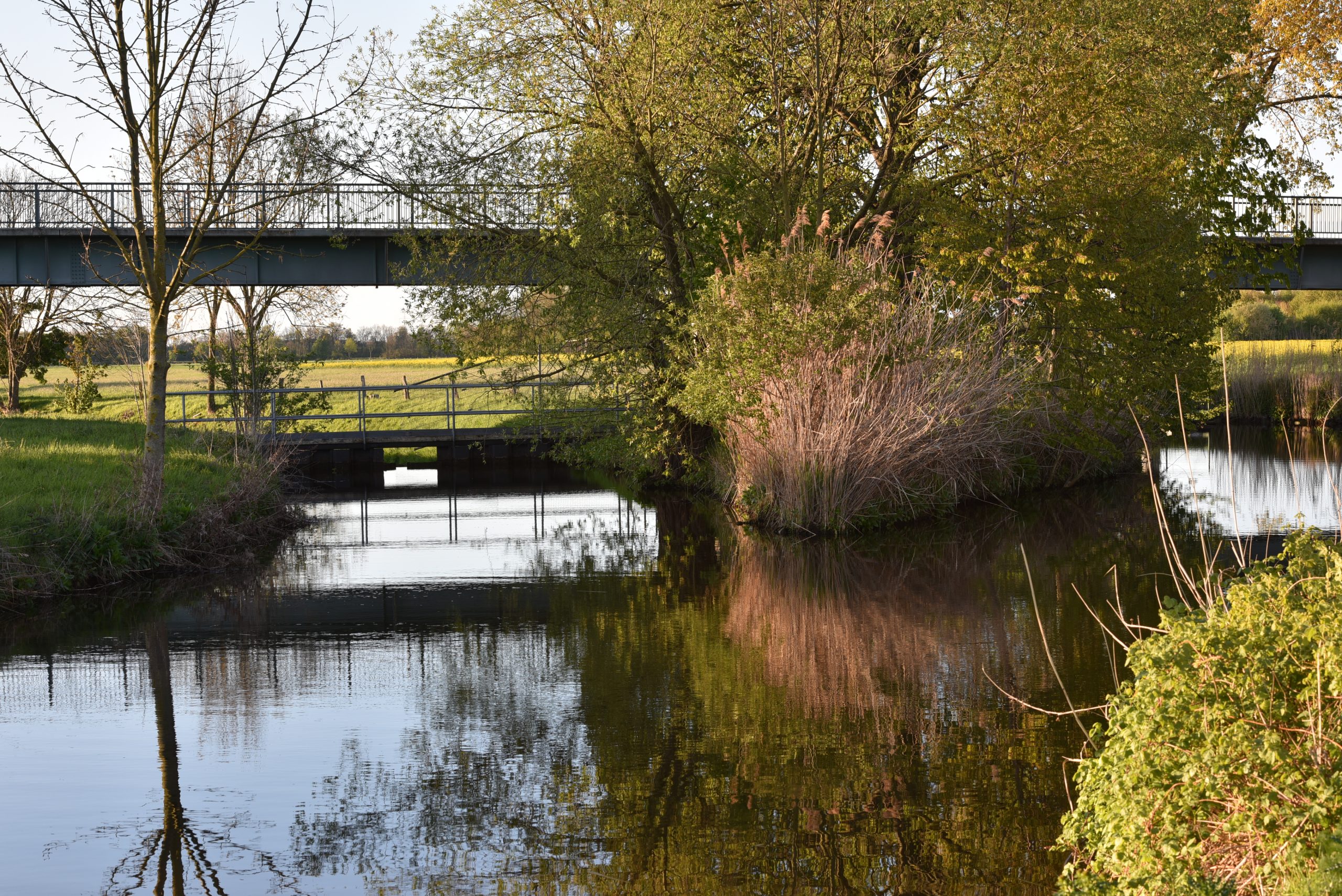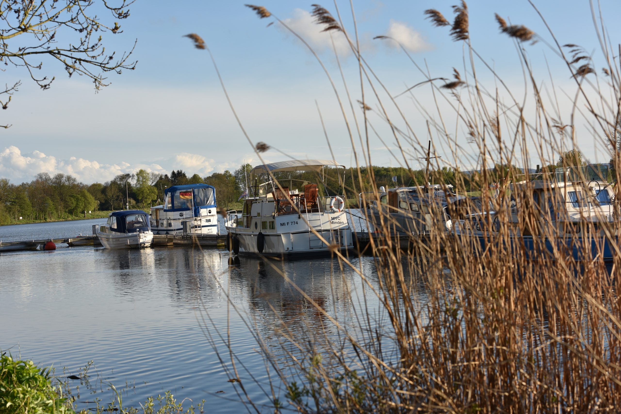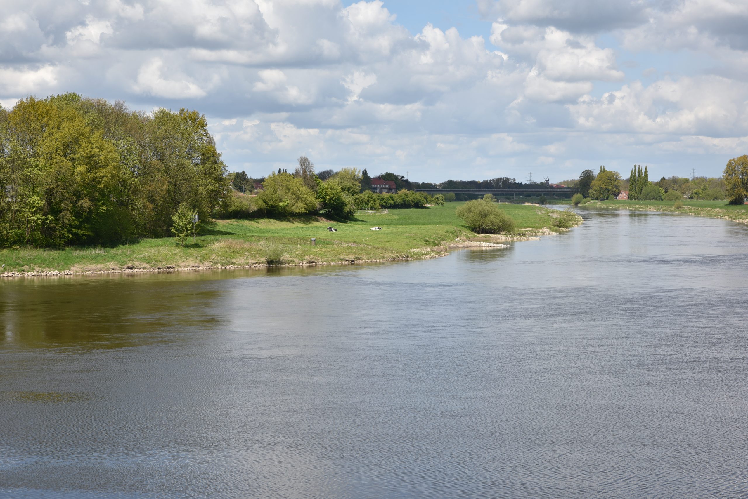In unmittelbarer Nähe gibt es eine Staustufe mit angeschlossenem Wasserkraftwerk. Einige 100 m Flußaufwärts beginnt der Weserseitenkanal wo es einen regen Binnenschiffartsverkehr gibt.