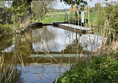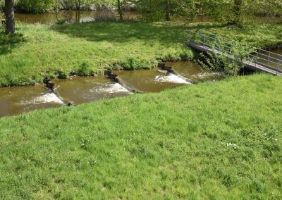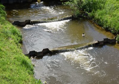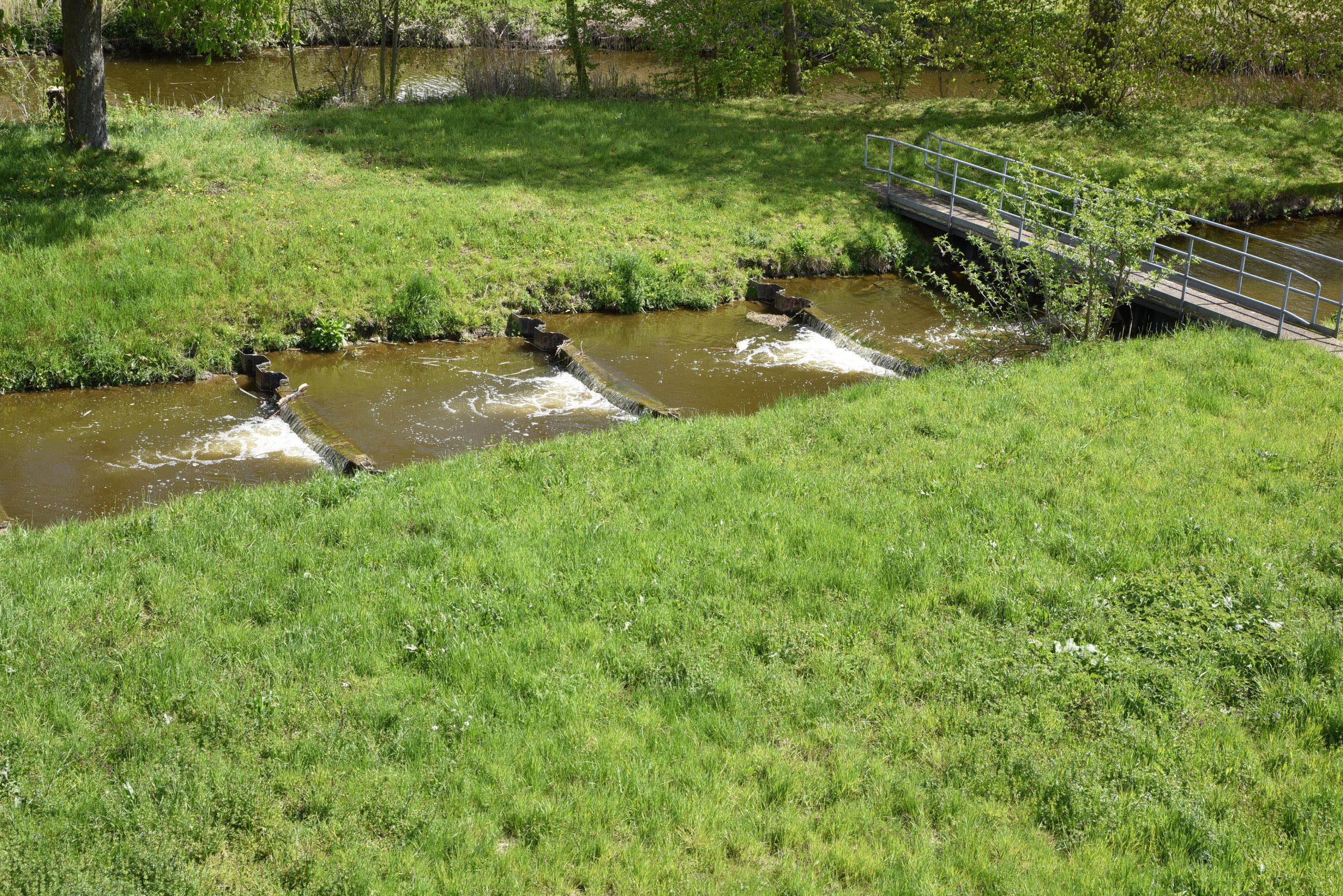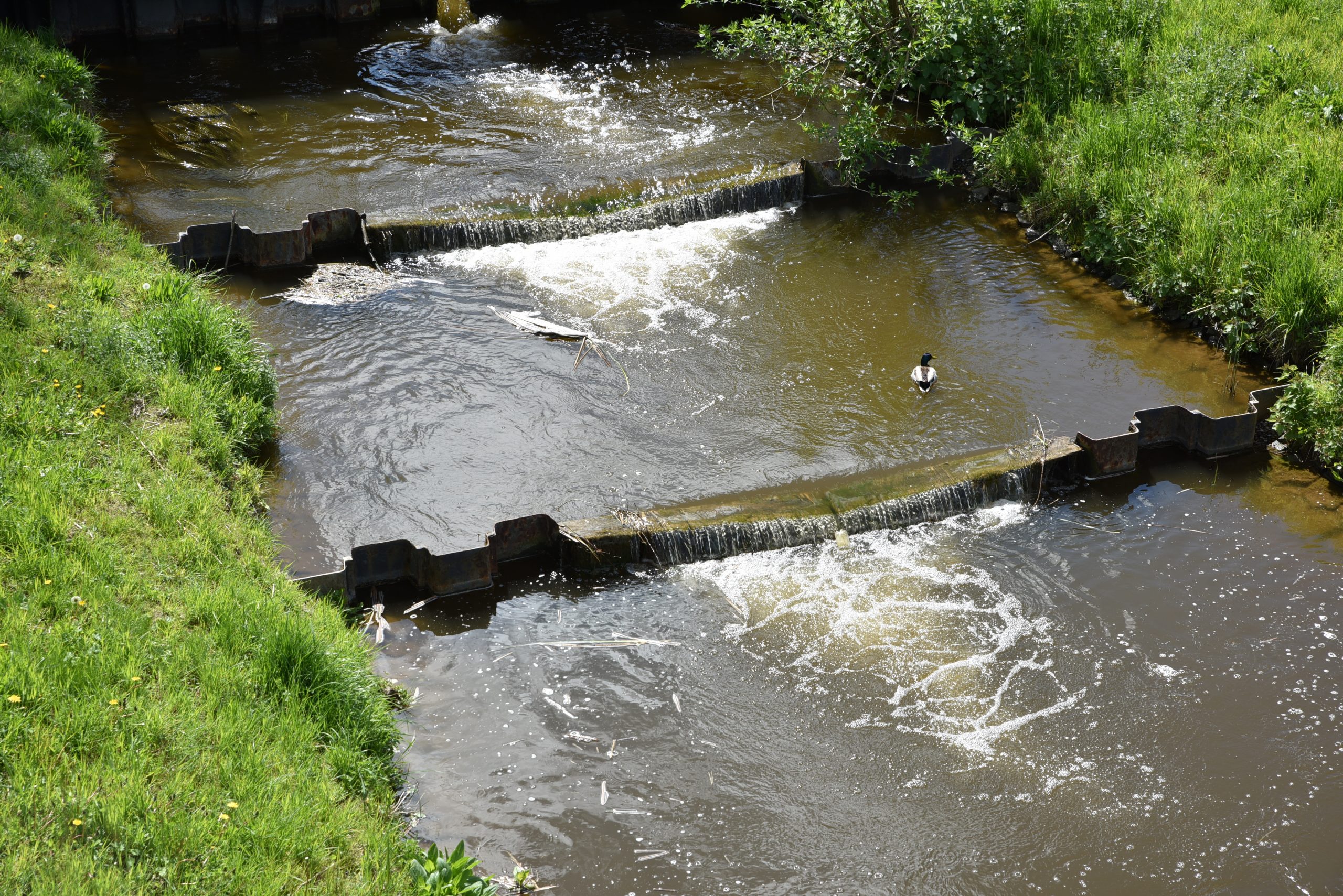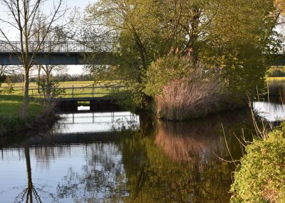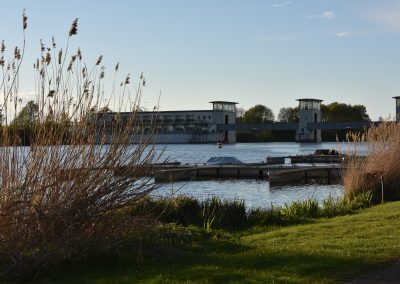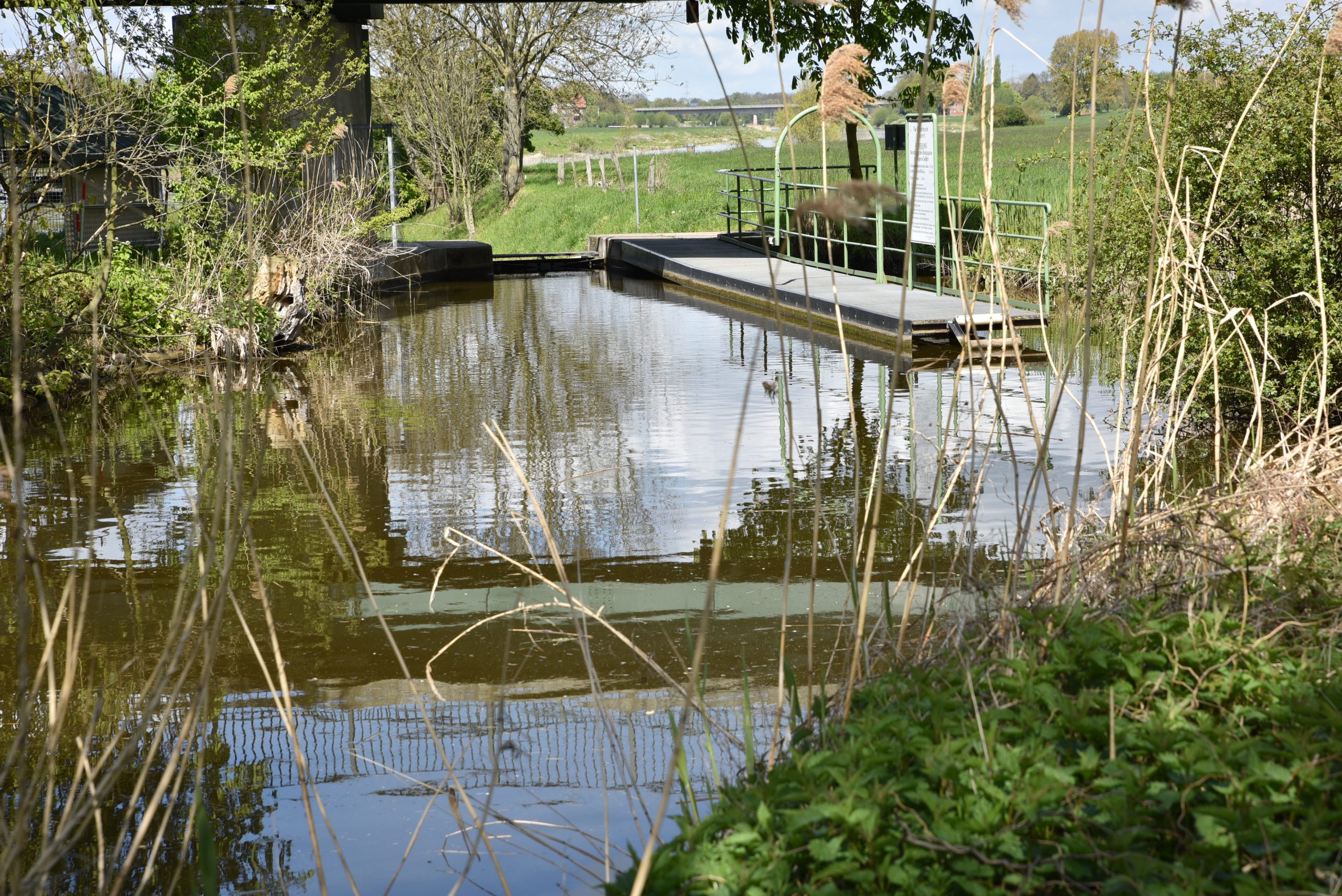 In unmittelbarer Nähe gibt es eine Staustufe mit angeschlossenem Wasserkraftwerk. Einige 100 m Flußaufwärts beginnt der Weserseitenkanal wo es einen regen Binnenschiffartsverkehr gibt.